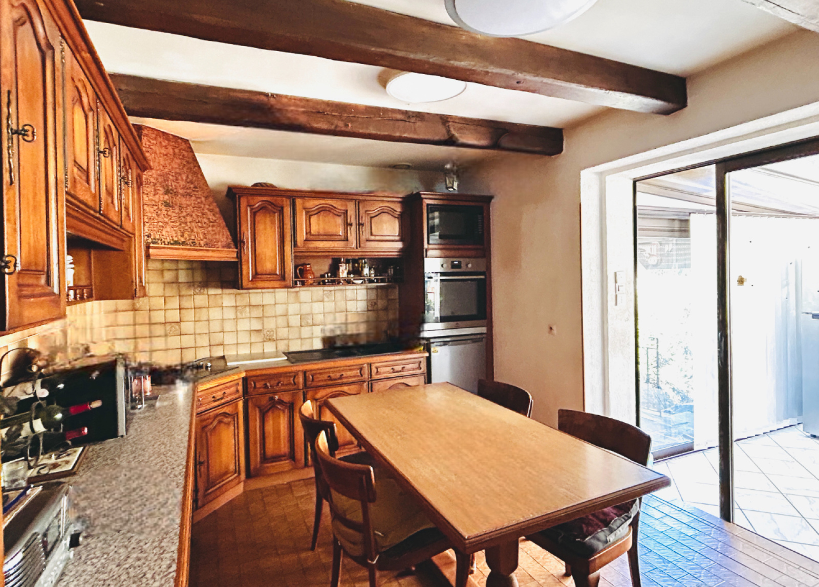 Entrée, salle à manger agrémenté d'un kachelofe et d'une cheminée, séjour accès jardin, cuisine ouverte sur une belle véranda accès jardin et disposant de volets électriques latéraux et en toiture.