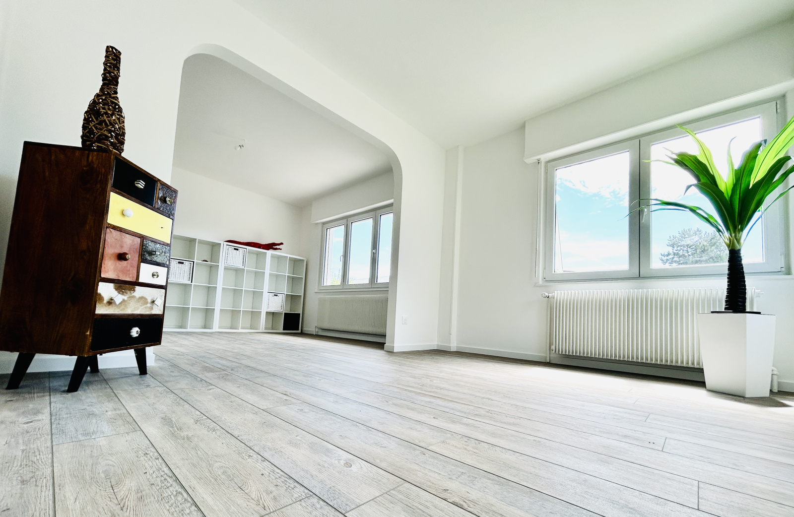 Sas d'entrée, toilette séparé, salon séjour - salle à manger (avec climatisation), cuisine équipée ouverte électroménagers neufs.