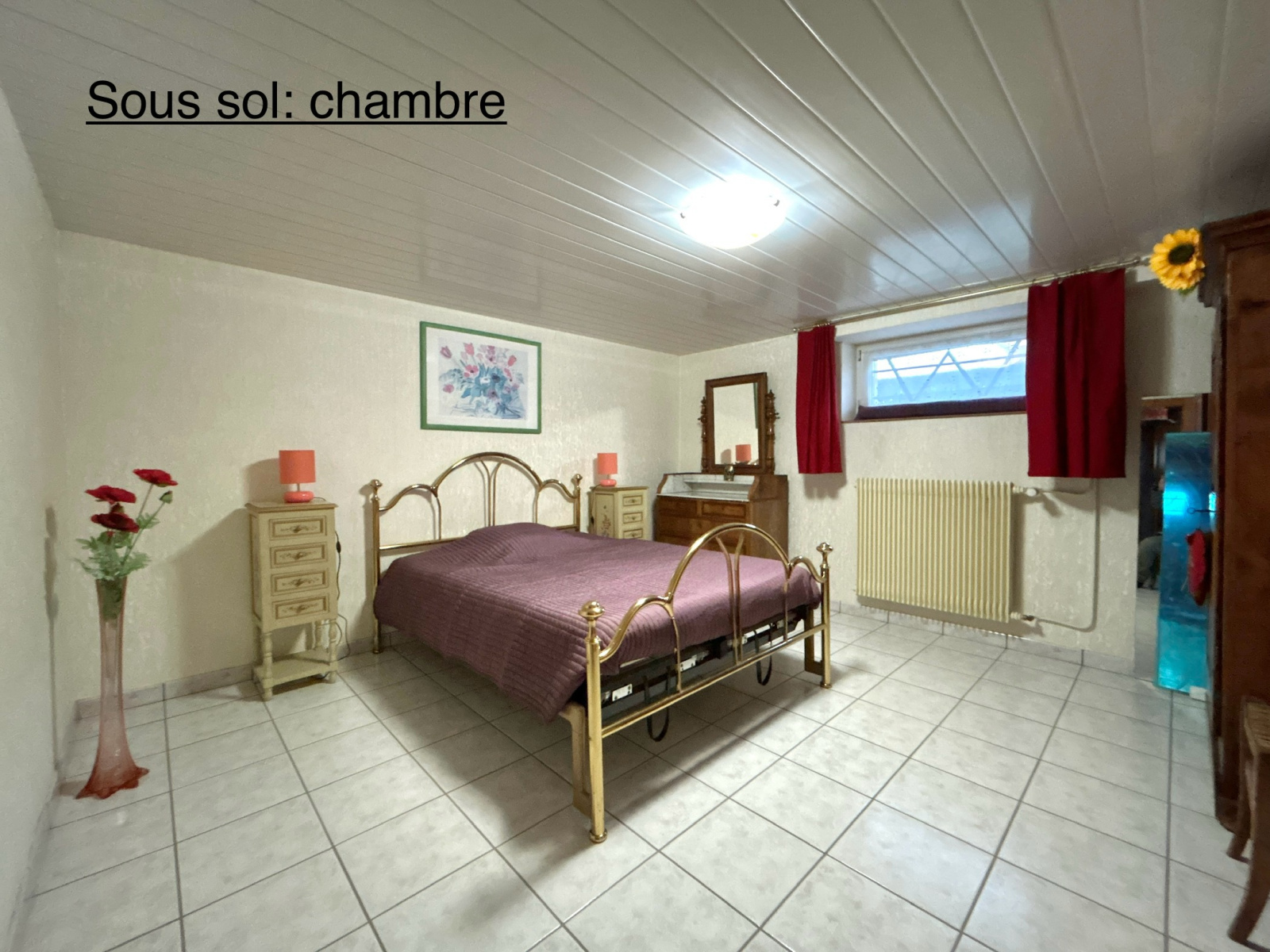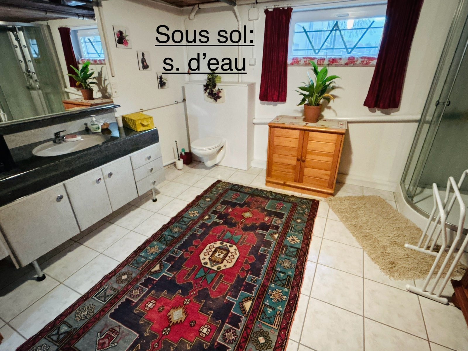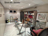 Sous sol complet carrelé hauteur plafond 2,30 m: possiblité d'appartement séparé ou activité professionnelle à domicile comprenant un double garage de 38 m2 porte motorisée, un atelier, une chaufferie, une buanderie, et un grand bureau de 27 m2, une chambre de 15 m2 et une salle d'eau équipée (+ toilette) de 16 m2.