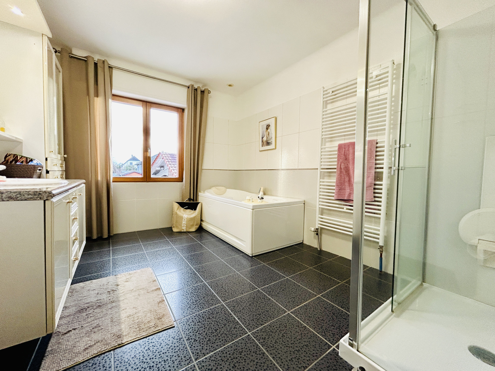 - Maison entretenue et isolée (Briques de 33 cm; isolation extérieure de 15 cm réalisée en 2009), DPE : C, potentiel total de 262 m2 (sous sol, rdc et 1er) chauffage au sol+radiateurs, volets électriques, aspiration centralisé, ascenseur accès à tout les étages (possibilité de devis pour le supprimer et remplacer par un escalier) climatisation salon, adoucisseur d'eau, chaudière gaz Buderus, fibre optique, double vitrage bois-alu, tuiles en terre cuite, toiture isolée, ...