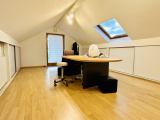 À l'étage, avec un accès par un ascenseur domestique, surface d'environ 47 m2 habitable, (isolation intérieure), on retrouve une très grande chambre à coucher avec la possibilité de créer 3 chambres après cloisement, de nombreux placards intégrés,un toilete séparé, et une pièce de 7 m2 pour une future salle de bains. Possibilité d'accèder à l'extérieur par une passerelle menant à la terrasse : voir photo).